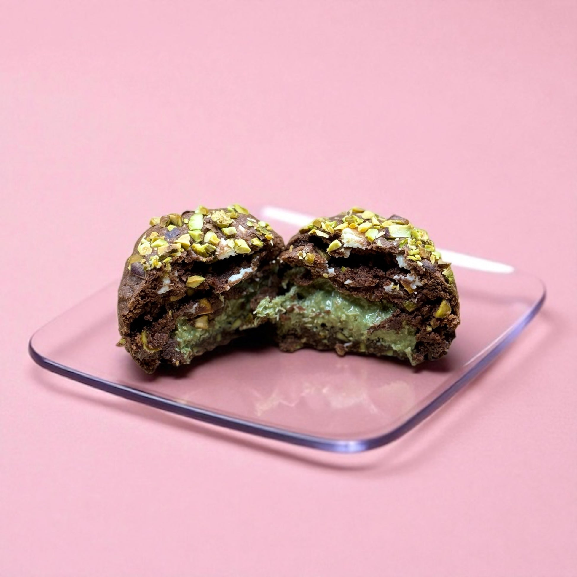 Indulge in the bold richness of our Chunky Dark Dubai Cookies, crafted for cookie lovers who crave depth and luxury. Each cookie is baked to perfection with a dark, intense cocoa base and generously filled with creamy Dubai pistachio – a nutty, aromatic blend inspired by Middle Eastern flavors.