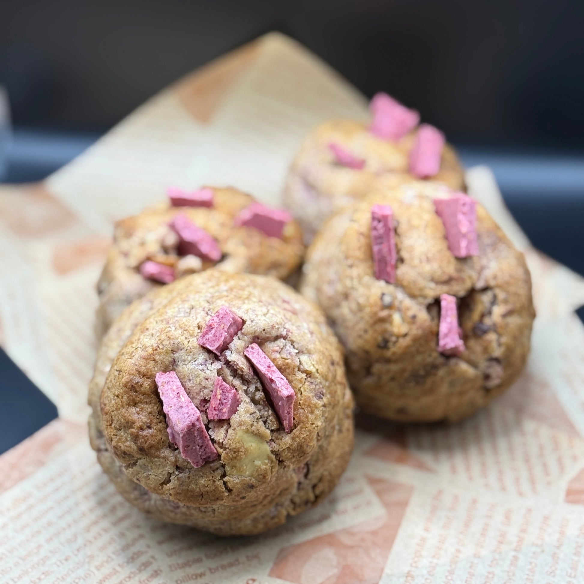 Frisk, syrlig og uimotståelig rik — våre Chunky Raspberry Cookies er fulle av saftig bringebærsmak, kremete biter av hvit sjokolade og dyp sjokoladenytelse. Tykk, myk og full av fruktig sjarm, er dette en dristig og elegant vri på en klassisk Cookie!